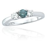 Cheap 10k White Gold Blue and White Diamond 3-Stone Ring (1/4 ct center, 1/2 cttw)