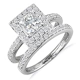esta precioso el anillo quisiera poder ver una fotografĂa con el anillo en un dedo para ver sus dimensiones,quiero poder hacer el pedido hoy, gracias.Get more detail about 1/2ct Pave Princess Diamond Bridal Set in 14k White Gold (GH SI3).