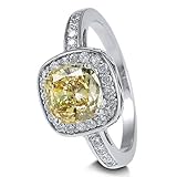 Get more detail about Sterling Silver Ring Canary Cushion Cubic Zirconia Wedding Engagement Ring 2.56 ct.tw - Ideal Gift For Mother Day, Anniversary, Engagement, Wedding, Birthday, For Her.